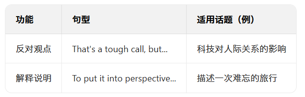 搭配语气词:在句型前加"Well""Hmm""Oh"等填充词,如"Well,if I had to choose,I'd say...",增加真实交流感